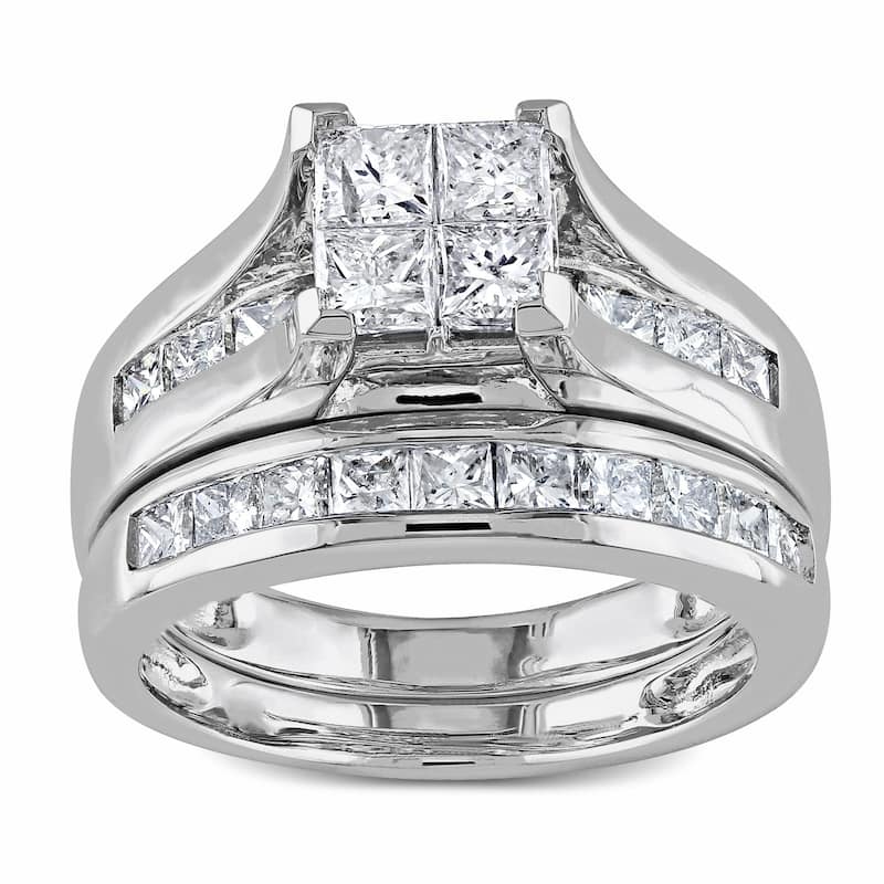 Miadora Signature Collection 14k White Gold 2ct TDW Channel-Set Diamond Quad Bridal Ring Set (G-H,I1-I2)