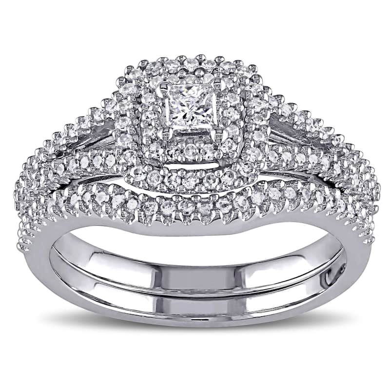 Miadora Sterling Silver 1/2ct TDW Princess and Round-Cut Diamond 2-Piece Bridal Set