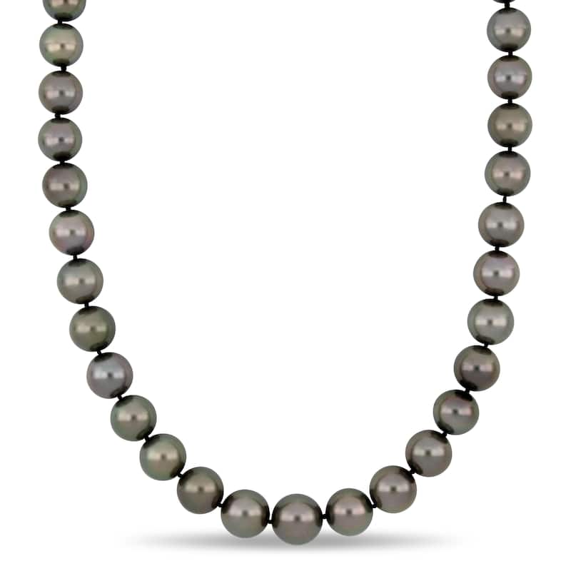 This Miadora pearl strand features lustrous Tahitian cultured pearls set together in a classic graduated design with a 14-karat white gold diamond ball clasp. This alluring pearl necklace makes a perfect elegant addition to any jewelry collection.