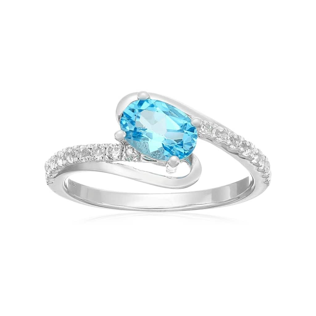 Sterling Silver London Blue Topaz & Created White Sapphire Ring
