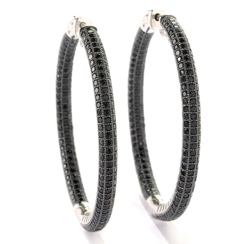 Sterling Silver 2" Black Spinel Inside out Mumma Hoop Earrings