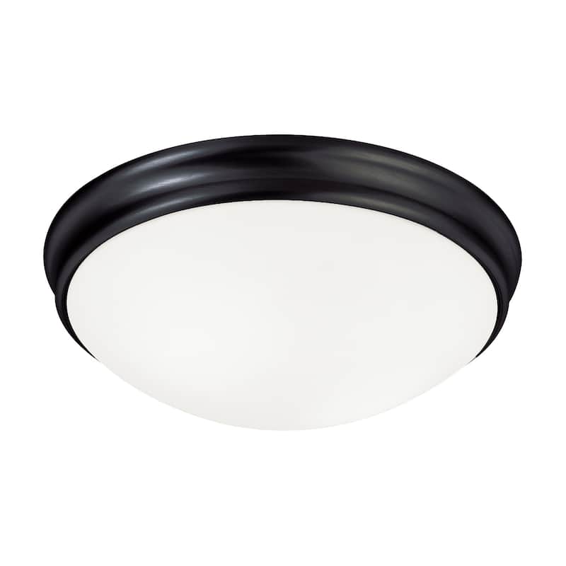 Add a modern touch to your home decor with this 2-light Matte Black Flush Mount. The hand-painted finish on the metal frame and the frosted glass shade combine to create a warm ambiance, perfect for any room in the house.