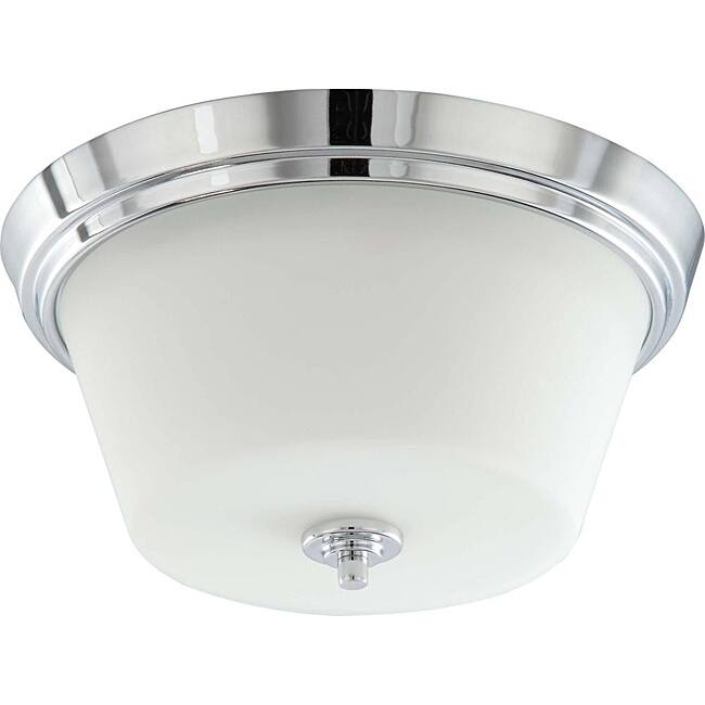 Bring a beautiful and functional accent to your home with this semiflush fixture from Nuvo Lighting. Made from chrome, this stunning fixture features a polished-chrome finish with a satin-white shade that adds a contemporary flair to any room in your home. The two-light downlight design is perfect for task lighting or illuminating a small room.