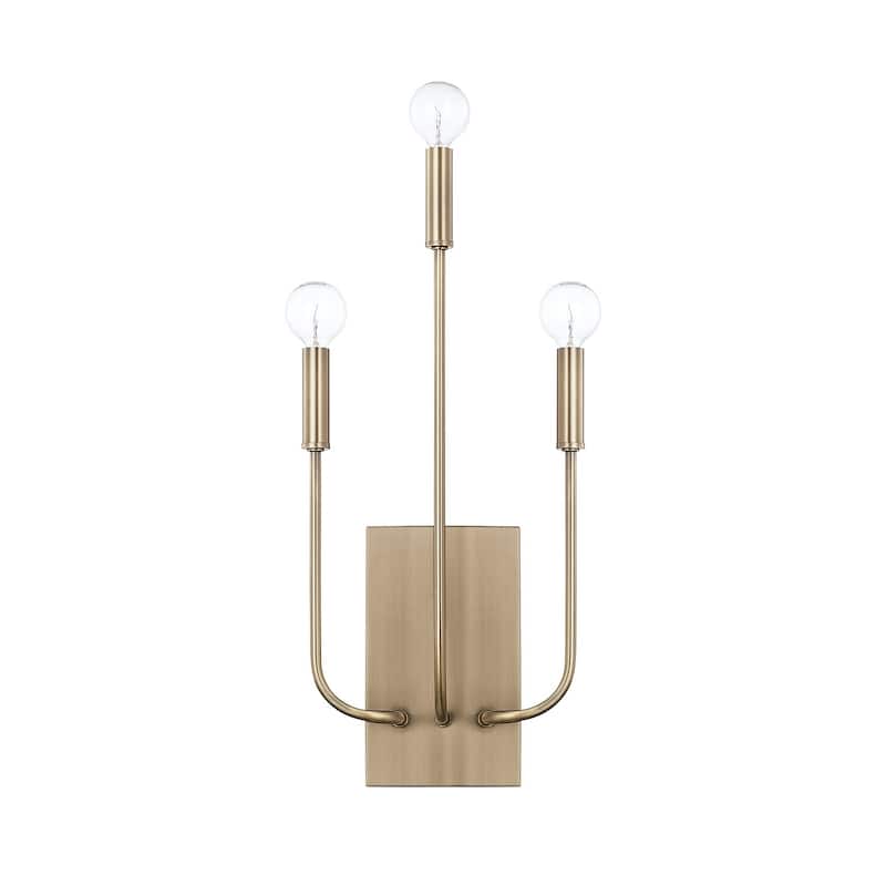 Make a mid-century modern statement with the Zander wall sconce. The steel fixture features an aged brass finish and three curved arms. Rated for damp locations, this sleek fixture can be installed in bathrooms.