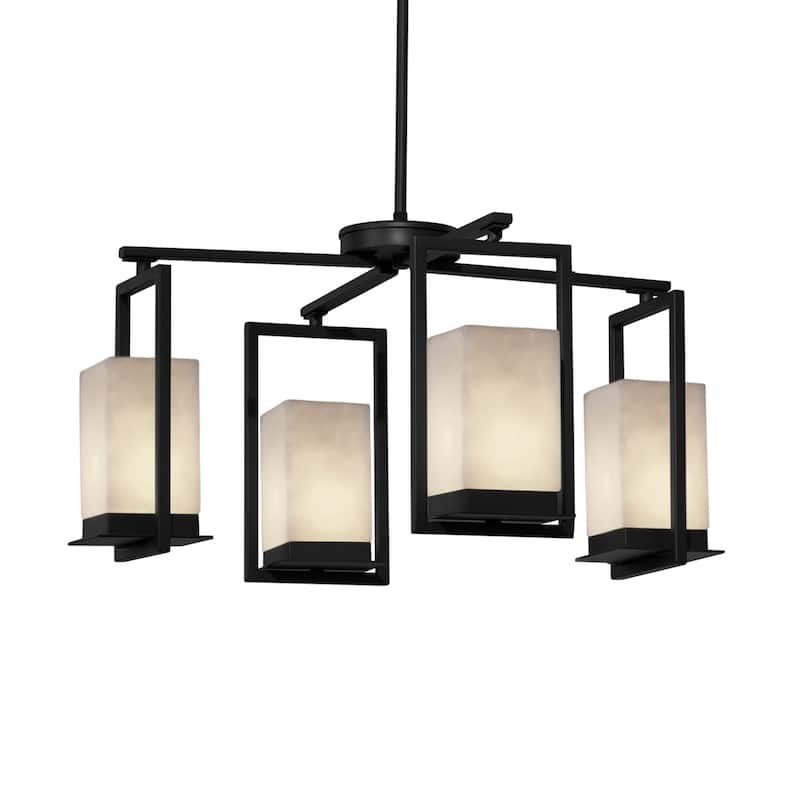 Copper Grove Susteren 4-light Matte Black LED Outdoor Chandelier with Rectangular Cloud Shades