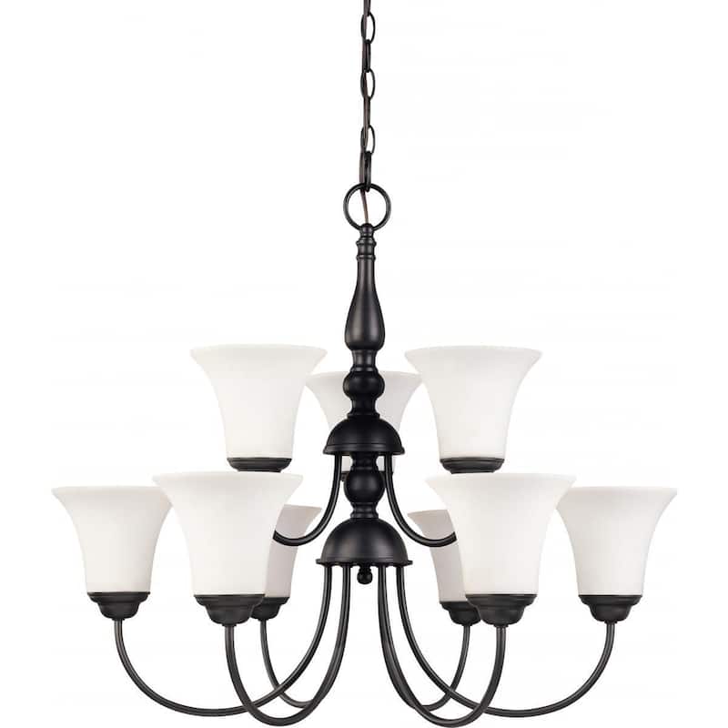 Dupont - 9 light 2 Tier 27" Chandelier with Satin White Glass