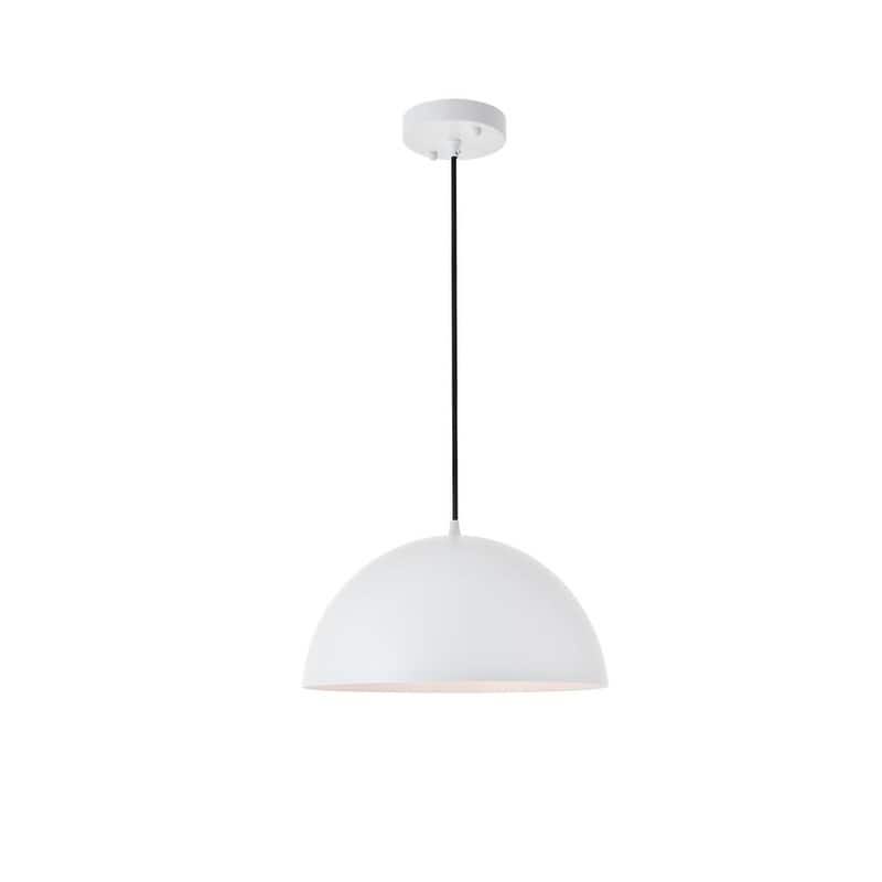 The Forte collection pendant lamp will surely create a modern and bold center point for any room. The hemispherical shade with a black finish exterior and white finish interior creates a dauntless personality that will illuminate any darkness with its reliable light. Without fail, Forte will excel at brightening your home, whether it's at your entryway, living room, or dining room.