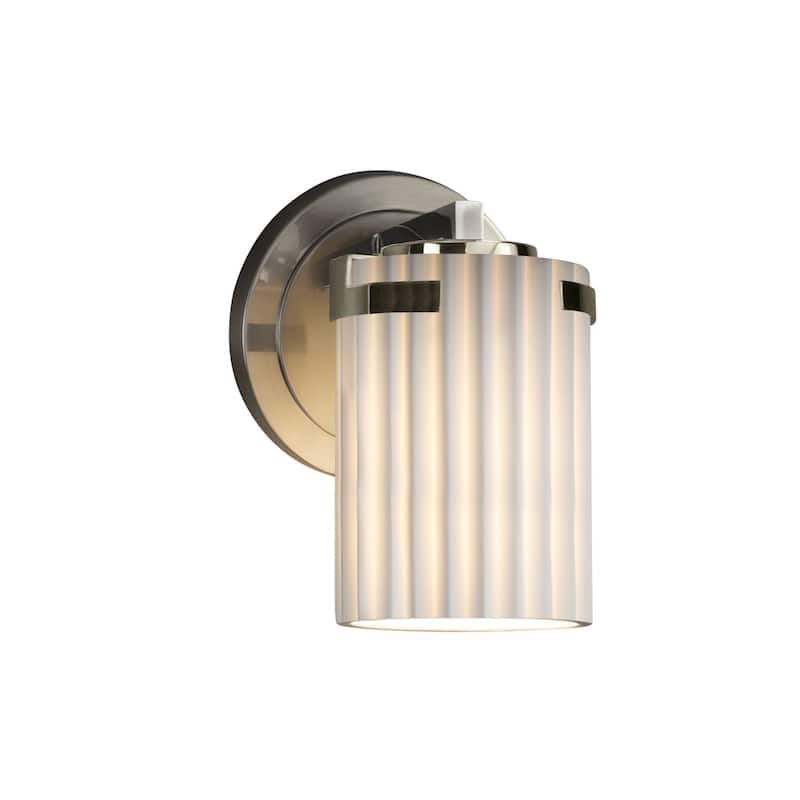 Justice Design Limoges Atlas 1-light Brushed Nickel Wall Sconce, Pleats Cylinder - Flat Rim Shade