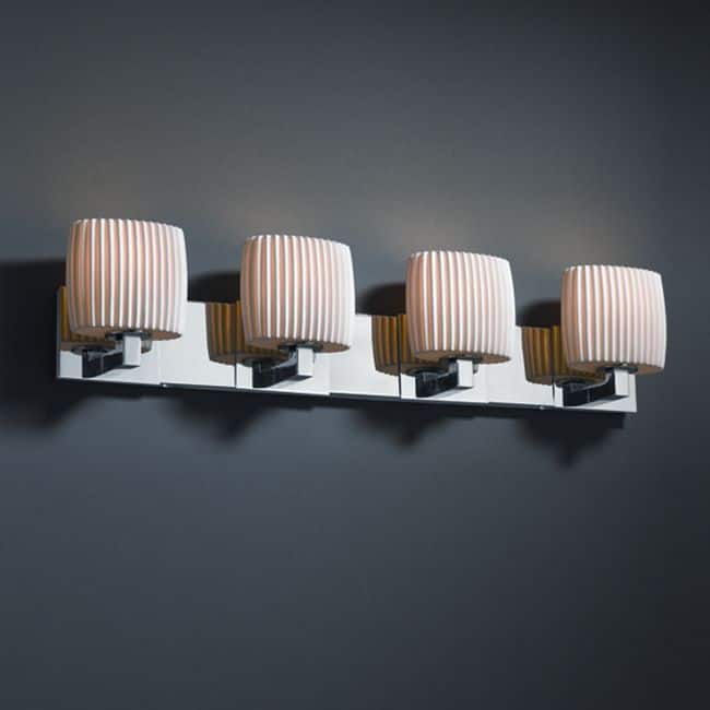 Justice Design Limoges Modular 4-light Polished Chrome Bath Bar, Pleats Oval Shade