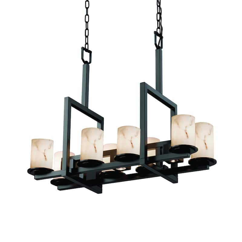 Justice Design LumenAria Dakota 8-light Matte Black Chandelier, Faux Alabaster Cylinder w/ Flat Rim Shade