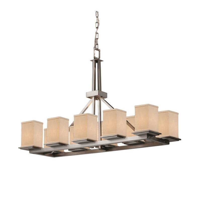 Justice Design Textile Montana 10-light Brushed Nickel Chandelier, Cream Square - Flat Rim Shade