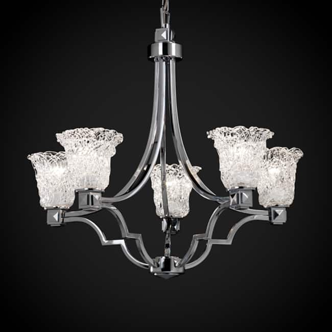 Justice Design Veneto Luce Argyle 5-light Polished Chrome Chandelier, Lace Round Flared Shade