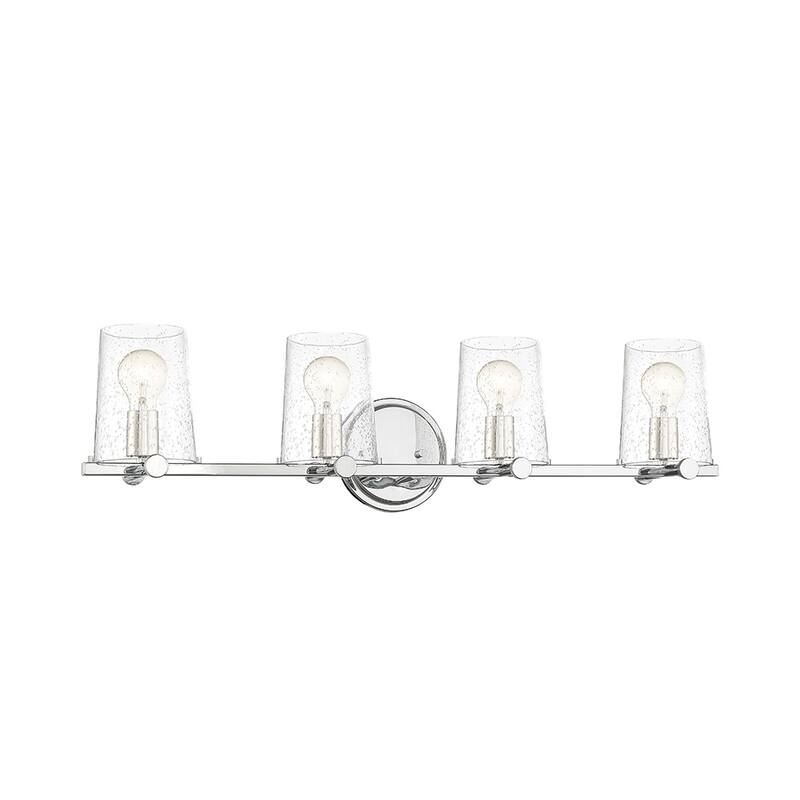 Hip and Airy, Matteson is at home in an Urban Loft or a Modern Farmhouse. The tapered clear seedy glass shades sit effortlessly between the bold knurled knobs giving sophisticated credit to both form and function.