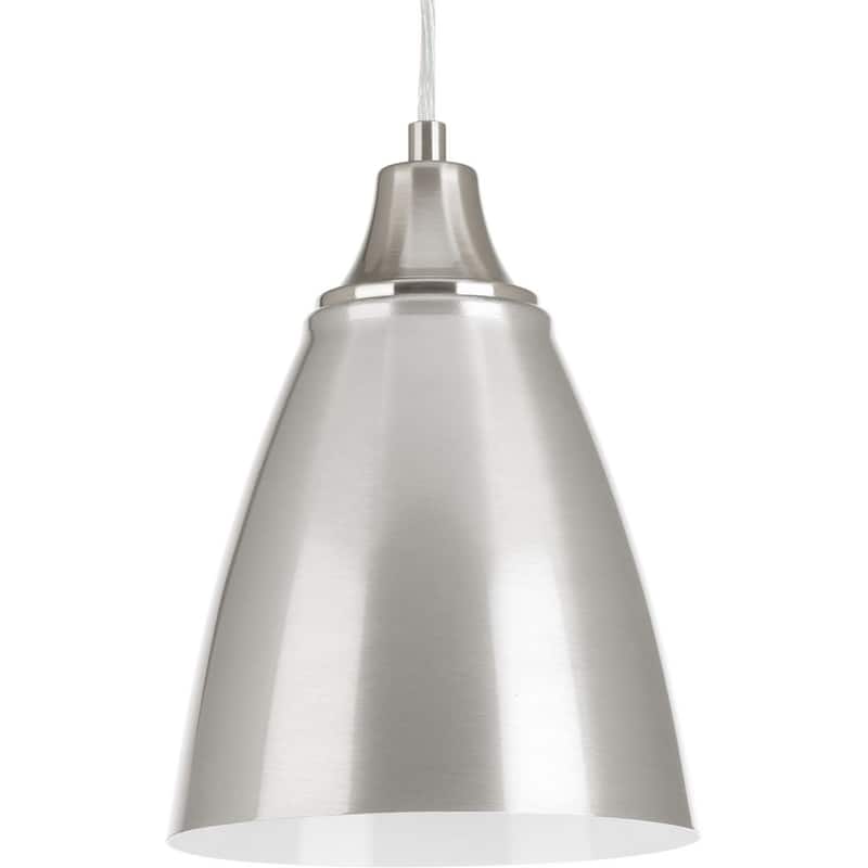 Illuminate your home with this remarkable nickel finished pendant. One-Light LED pendant features designer oriented details. Brushed Nickel finish with polished white interior. 3000K, 90+ CRI, 623 lumens. Title 24 compliant.