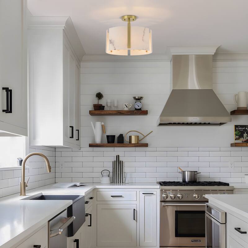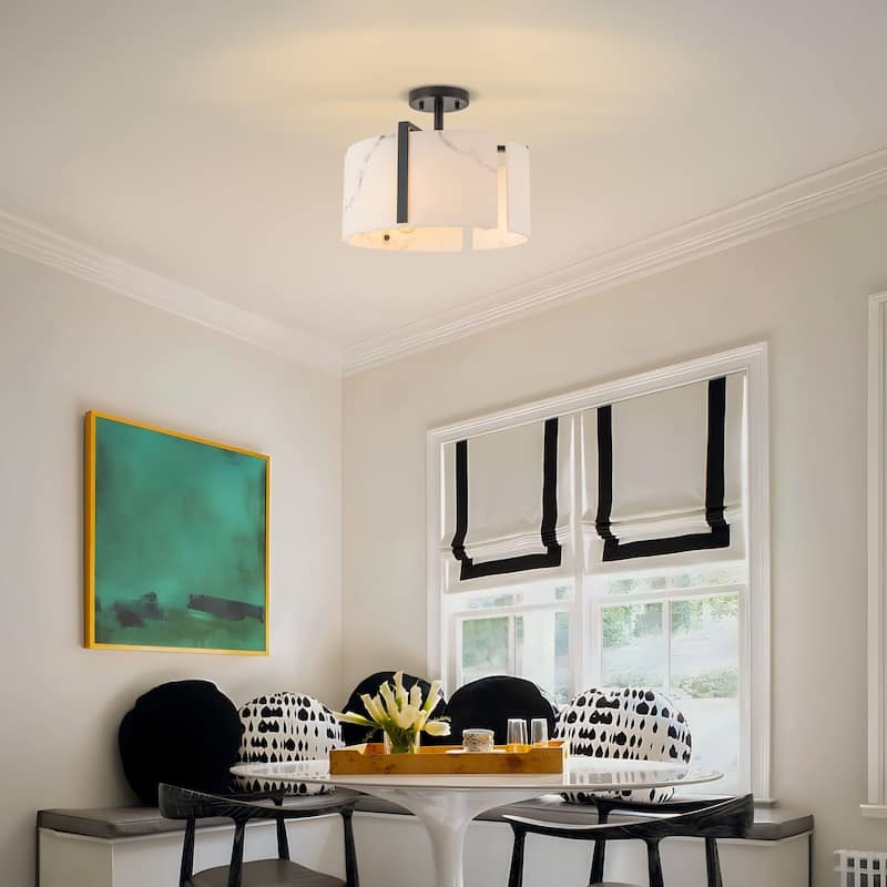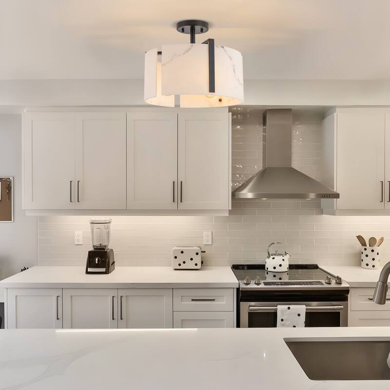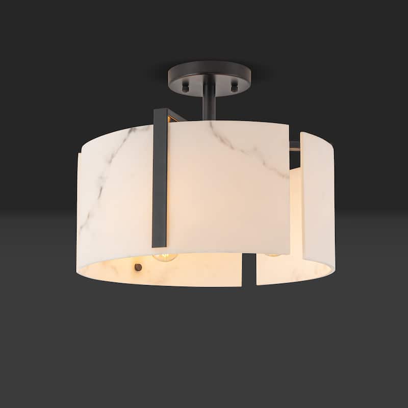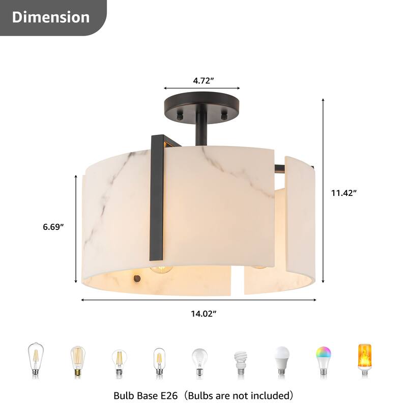 Bring refined elegance into your home with this modern flush mount ceiling light. Featuring a round frame paired with a natural alabaster-style shade, this fixture offers a one-of-a-kind look where every piece has its own unique veining and texture. The thick, solid glass construction adds weight and substance (7.7 lbs), ensuring a premium feel and lasting durability. At 14.02 inches wide and 11.42 inches high, it provides the perfect balance of presence and practicality. Available in two finishes—matte black for timeless versatility or plated gold for a warm, contemporary accent—this ceiling light complements a wide variety of interior styles. Designed with three E26 sockets, it works beautifully with dimmable bulbs and compatible switches, allowing you to create the perfect ambiance in any room.
