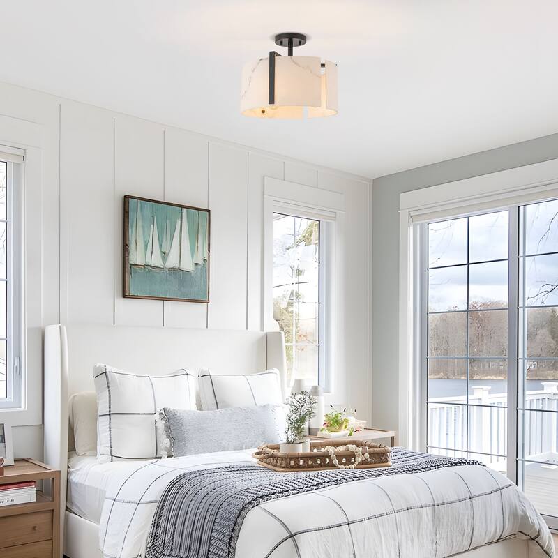 - Modern Elegance: Sleek round frame paired with natural alabaster-style shade for a timeless look.