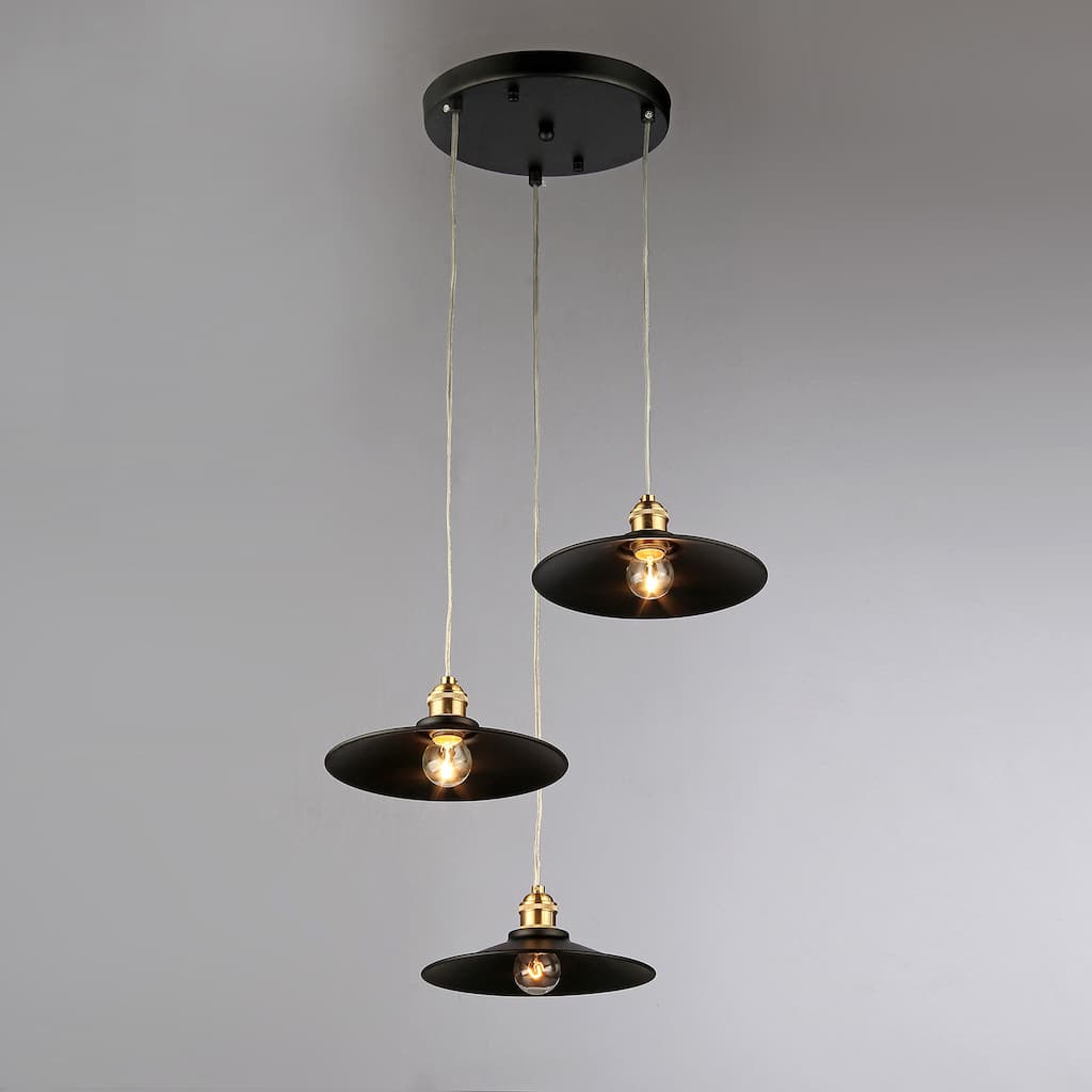 This is a lovely flushmounted ceiling lamp influenced by early mid-century design. The dome shape antique black is sophisticated and graceful. The exposed bulb design gives full illumination from the three lights powering this fixture. Understated elegance is what you'll be adding to your space.