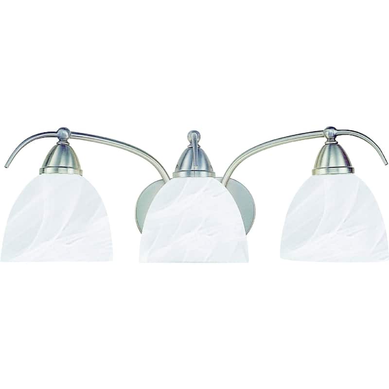 Enjoy a transitional look with this Kora 3-Light Brushed Nickel Alabaster Glass Vanity fixture made to compliment contemporary home aesthetics. Created by experienced artisans, Alabaster Glass is made to stand out and provide an even glow around any given space. Available in a Brushed Nickel finish this fixture greatly compliments similarly finished appliances in bathrooms, powder rooms, and many other indoor areas. This fixture is Damp rated for indoor use only, is made with heat-resistant components and is individually inspected for quality asssurance.
