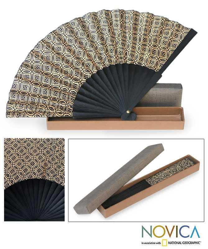 NOVICA Handmade Silk 'Golden Rings' Batik Fan (Indonesia)