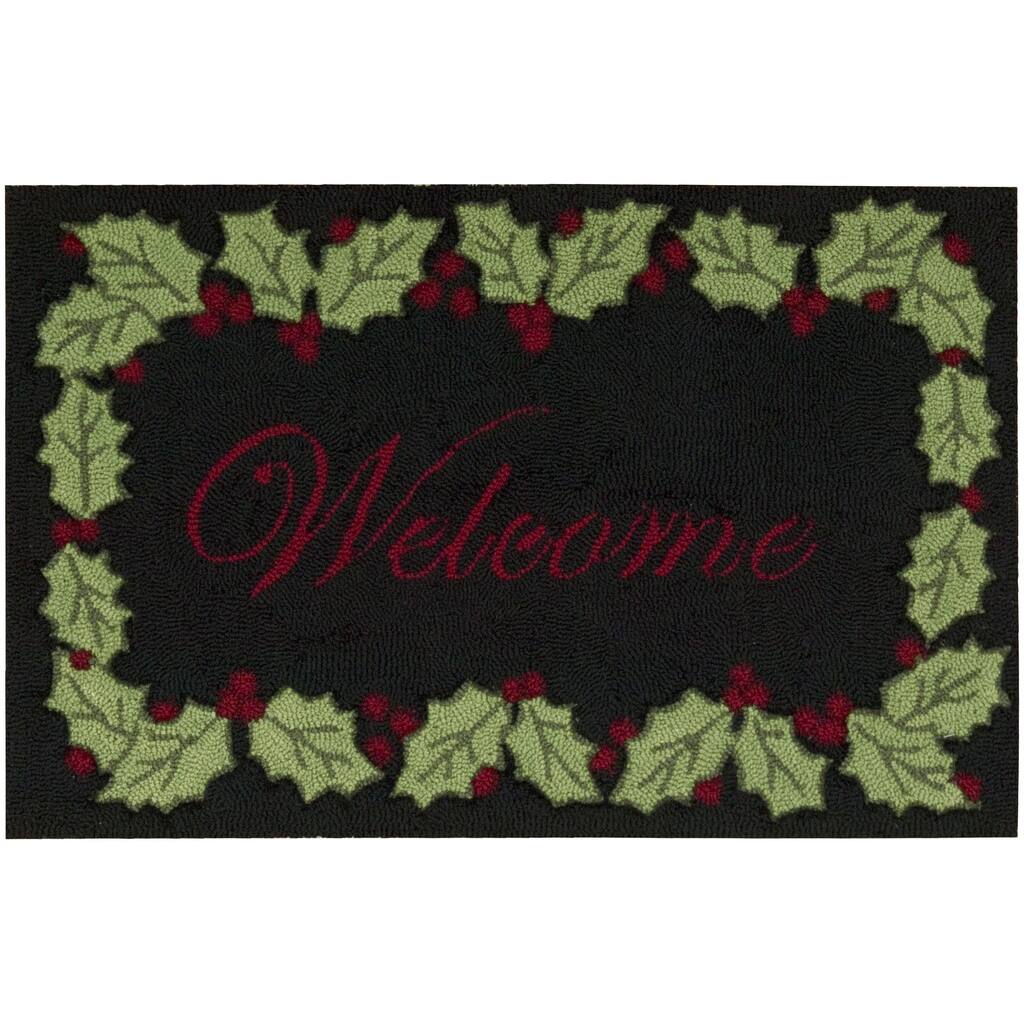 Nourison Everywhere Welcome Holly Border Black Accent Rug - 1'8" x 2'6"